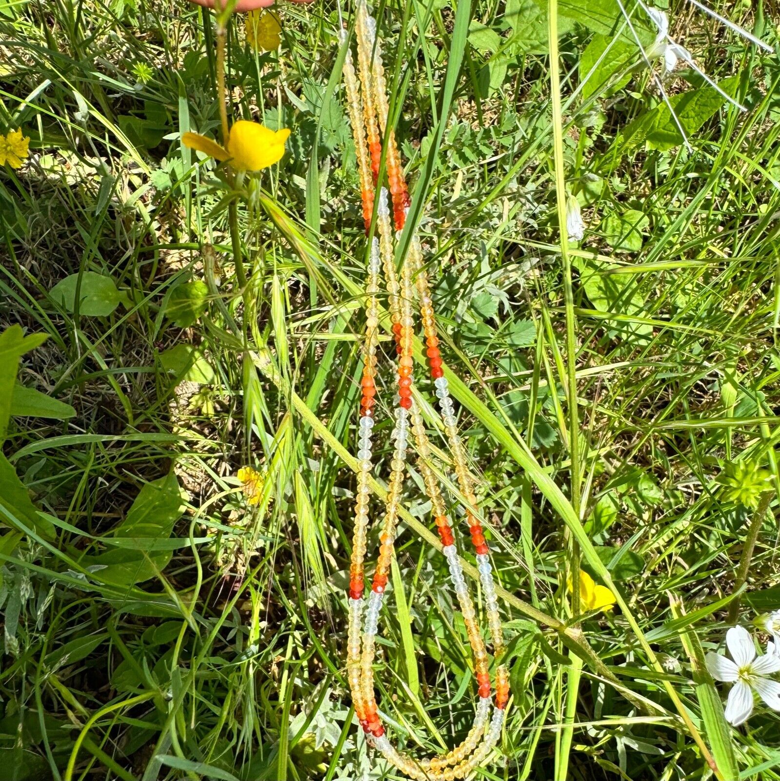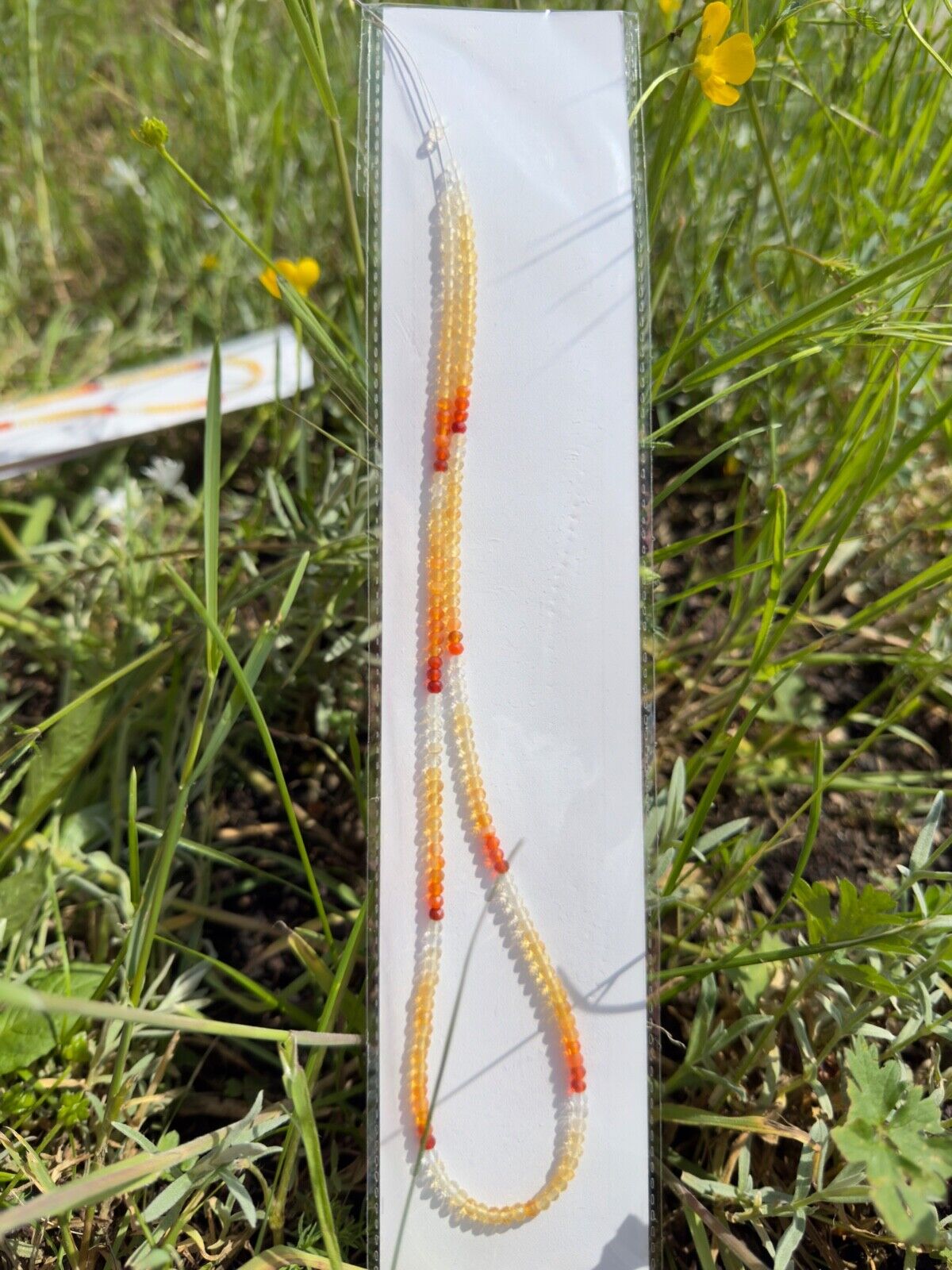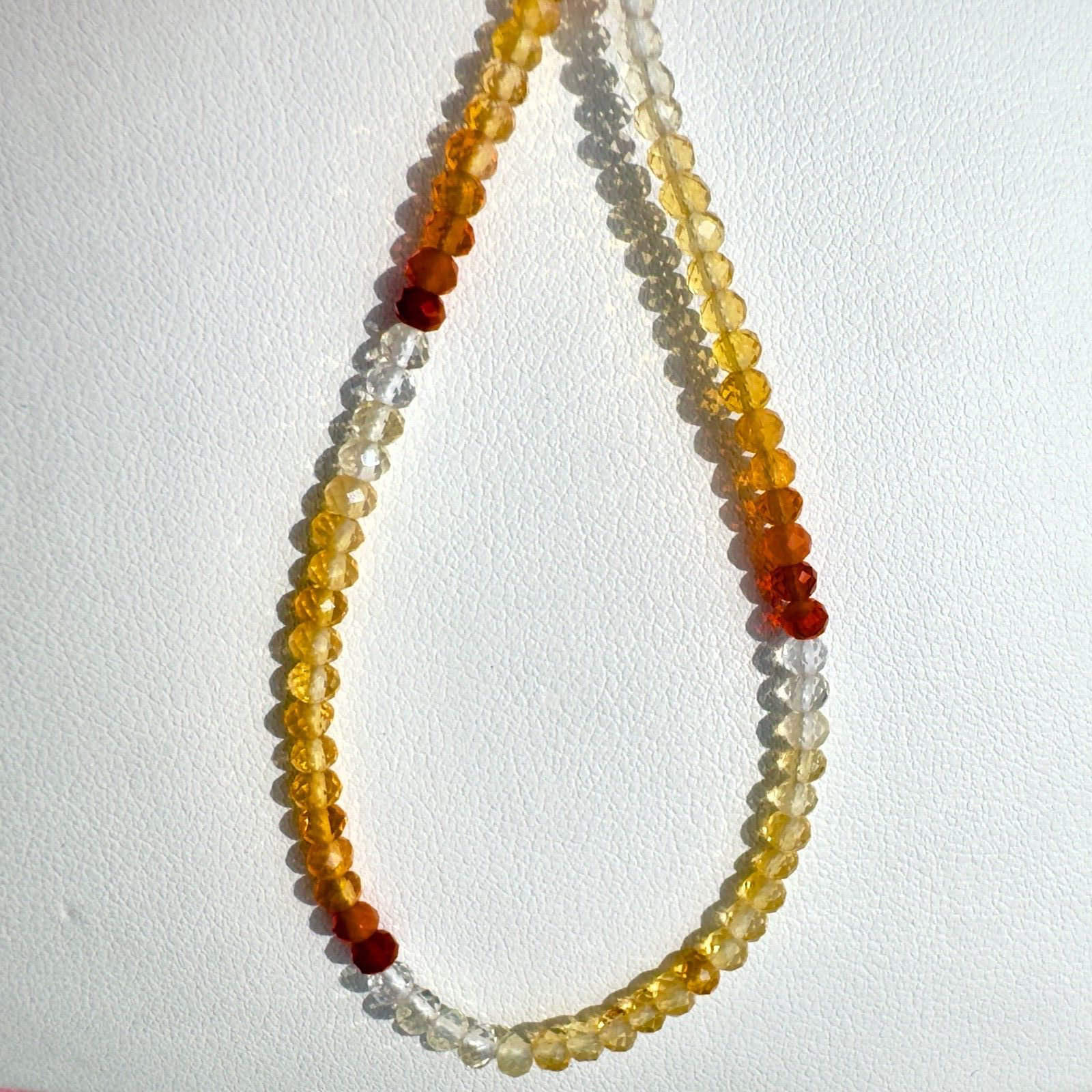 These AAA+ Mexican Fire Opal Faceted Roundel Beads are a beautiful piece of jewelry. The shiny surface and the white, red, orange, yellow tones make these pearls a real eye-catcher. The roundel shape and the strand ensure a unique look and a pleasant wearing comfort. Made in Ethiopia and weighing + 22 carats, these beads are a high quality choice for jewelry making. The faceting gives them a special fascination and makes them a perfect accessory for any occasion. With a size of 3 mm, they are perfect for the design of bracelets, earrings and necklaces. White, red, orange, yellow tones A beach is 43 cm long. The beads are threaded directly on a finished steel strand, so that you can simply put a closure on it and there is a finished beautiful necklace ready in just a few minutes and you can also create other jewelry with the beads and the wire