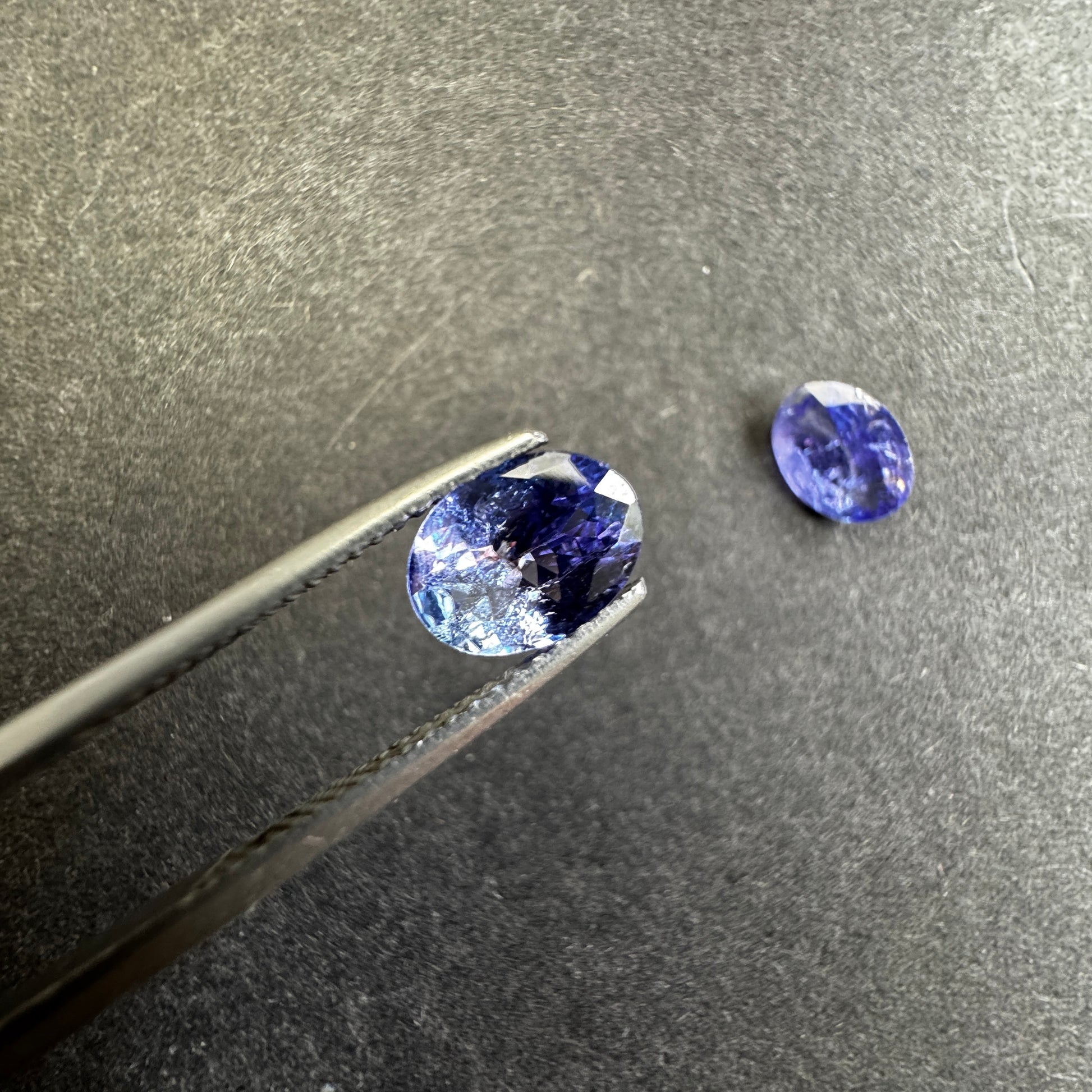 This set of two beautiful Tanzanite gemstones boasts a total weight of 2.07 carats. With their oval shape and transparent clarity, these gemstones are perfect for creating elegant jewelry pieces. Sourced from Germany and treated with heat, these Violet Blue gems are free of inclusions, ensuring their high quality and stunning appearance.
