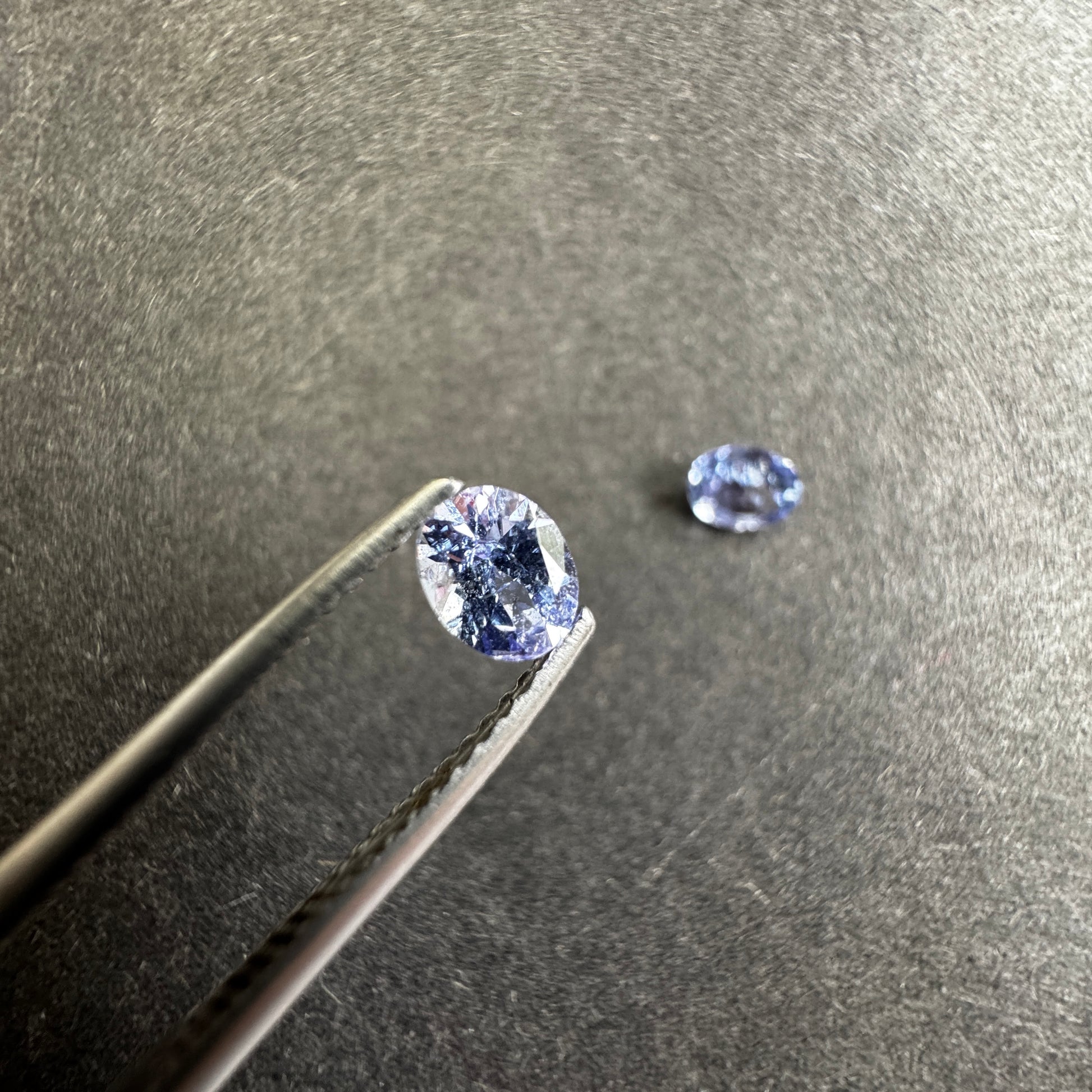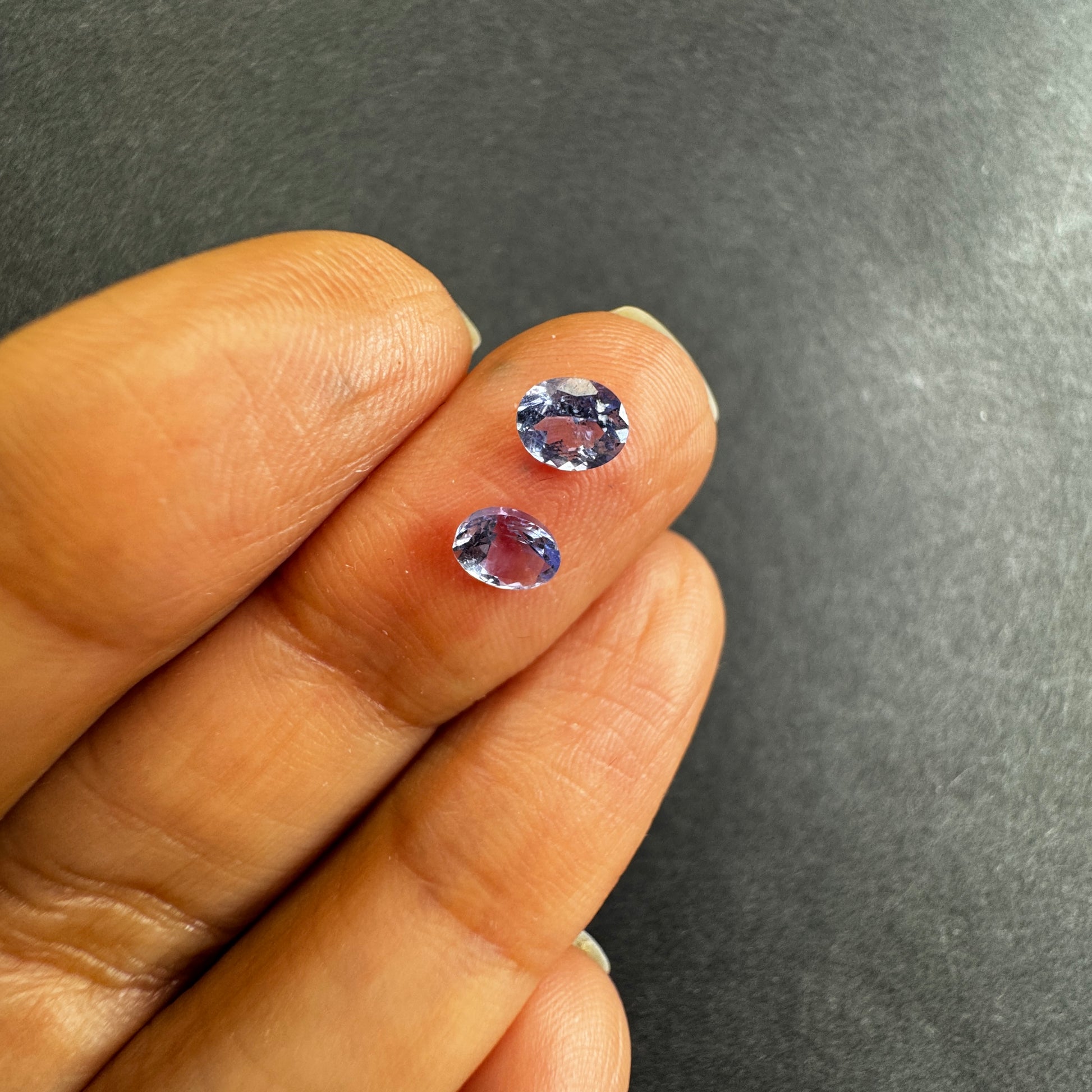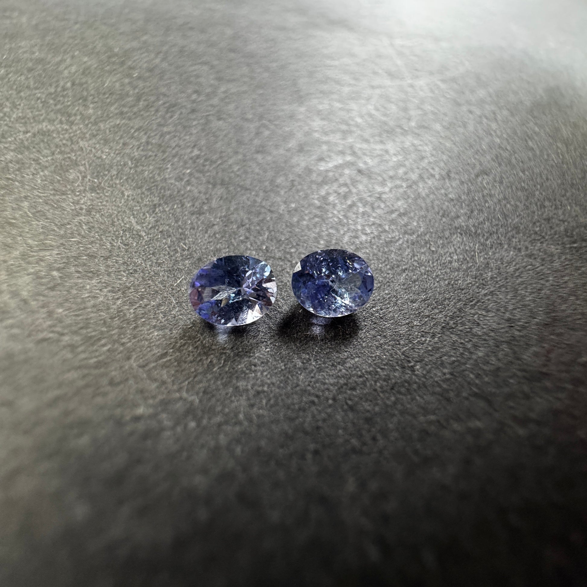 Set of two exquisite Tanzanite gemstones, each weighing 0.77 carats. With a clarity of "Whit out inclusion", these oval-shaped gems offer a beautiful violet blue hue. These transparent stones are perfect for jewelry making and will be shipped from Germany. Product color may vary slightly.