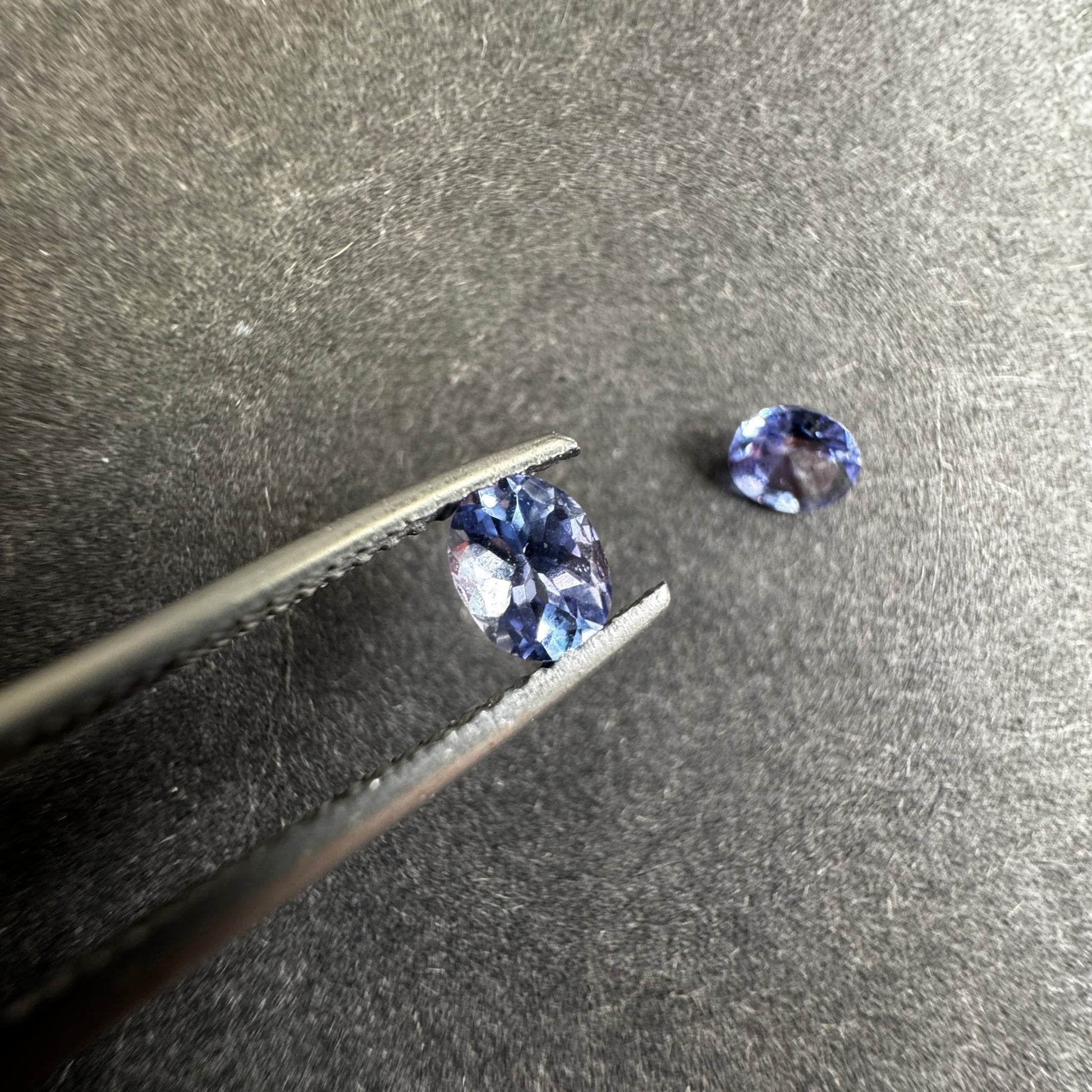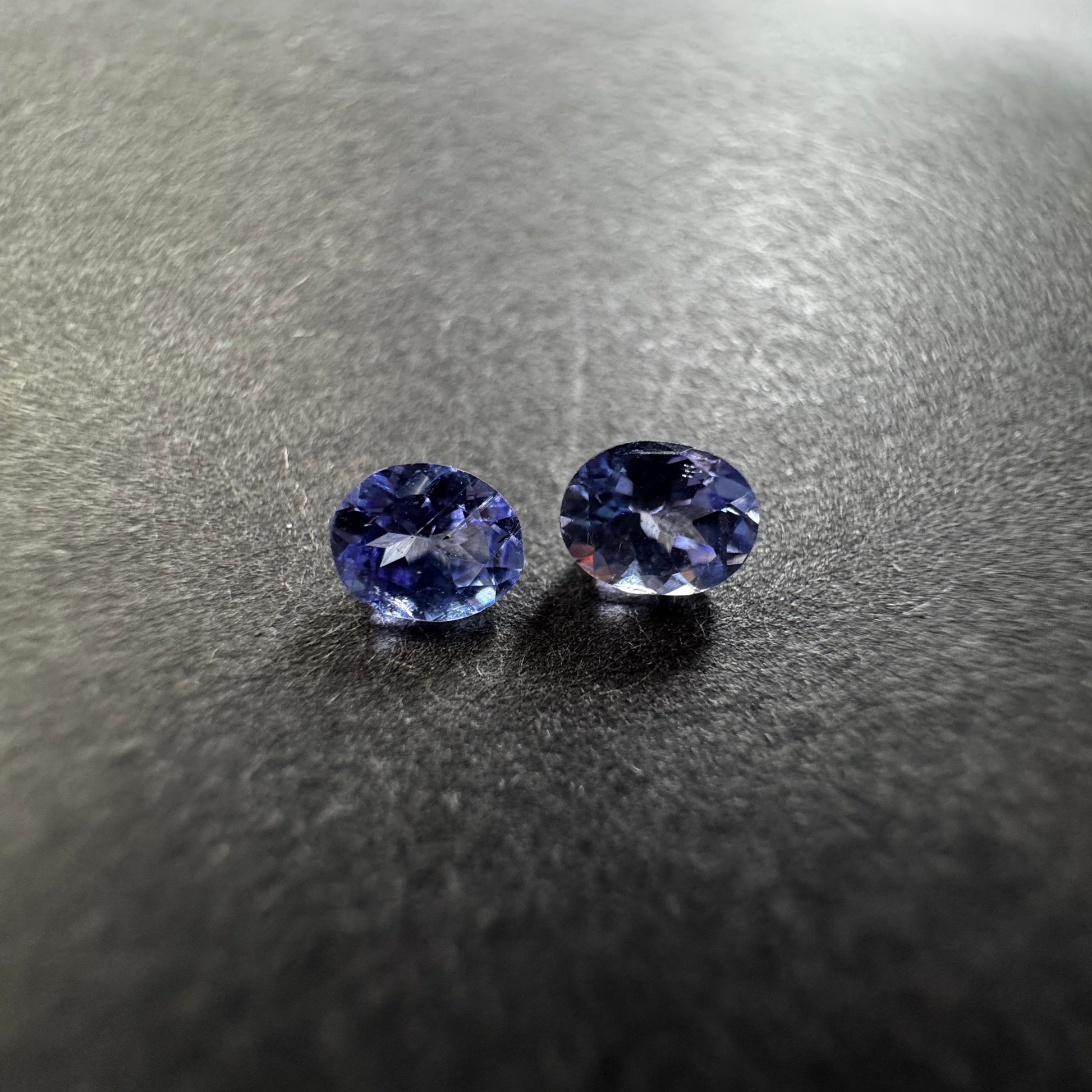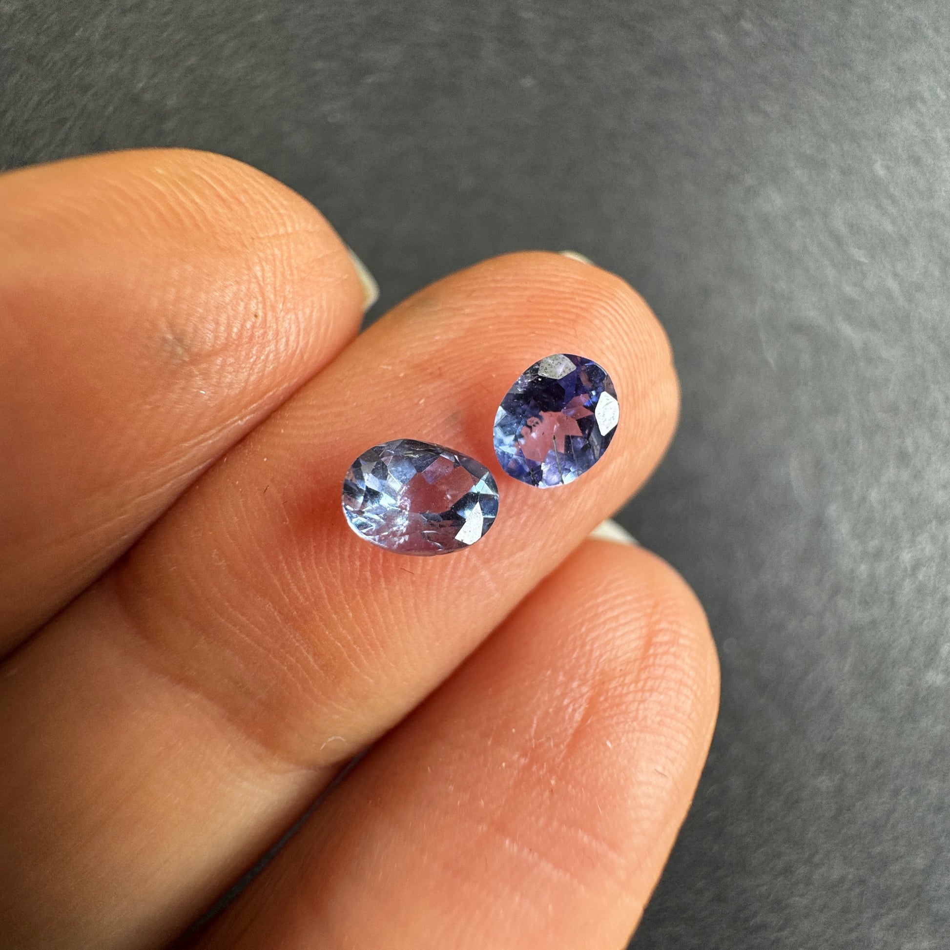 Set of two exquisite Tanzanite gemstones, each weighing 0.68 carats. With a clarity of "Whit out inclusion", these oval-shaped gems offer a beautiful violet blue hue. These transparent stones are perfect for jewelry making and will be shipped from Germany. Product color may vary slightly.