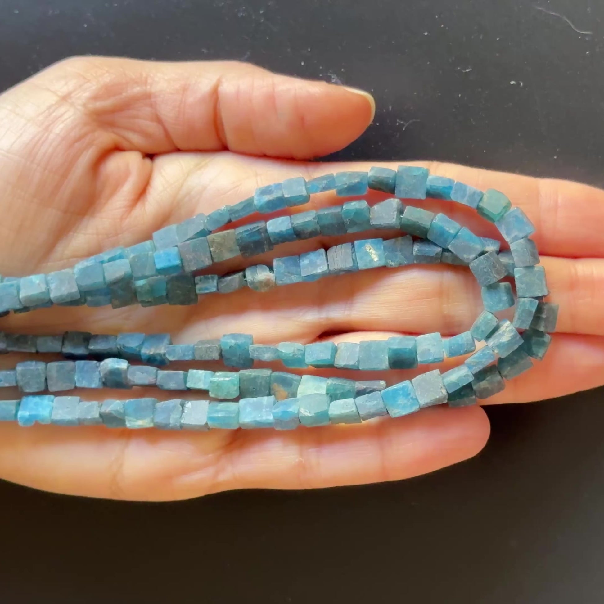 Raw and radiant, these rectangular cube-shaped Apatite beads are a favorite among crystal lovers and designers looking for a bold, grounded look.