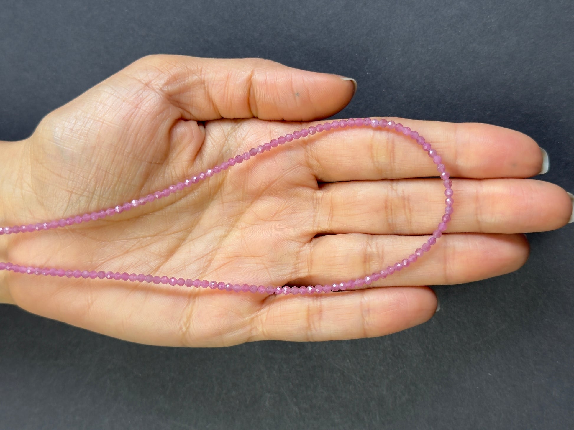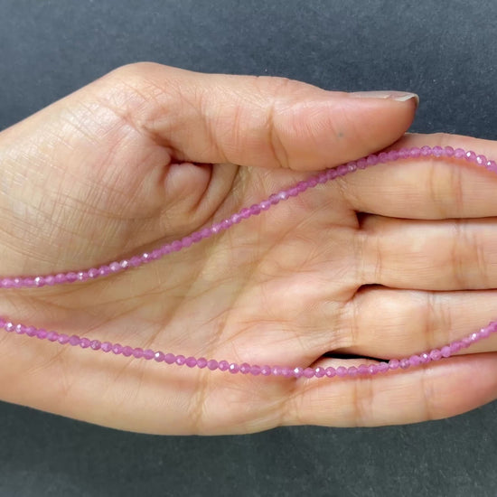 These faceted round beads display vibrant tourmaline in lovely matte pink hues. With a length of 43 cm, they bring an elegant and refined touch, ideal for jewelry designers looking for superior quality and subtle colour variations to enhance their pieces.