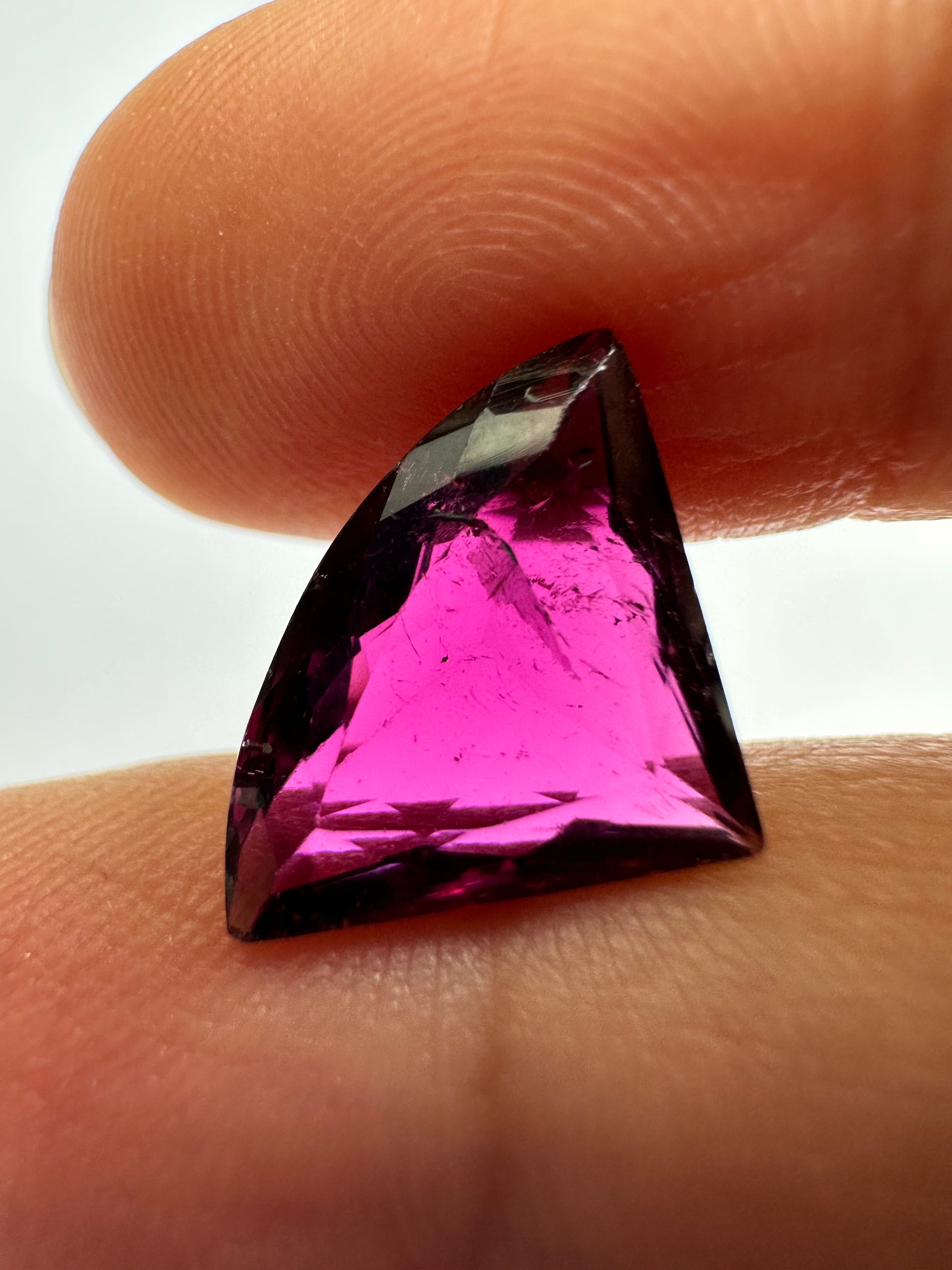 Dieser echte Turmalin-Edelstein (TR250) wiegt stolze 4,1 Karat und hat eine attraktive, ausgefallene Form. Der violette Edelstein besticht durch seine transparente Klarheit und natürliche Einschlüsse. Der fachmännisch geschliffene Edelstein verleiht jeder Sammlung Eleganz.