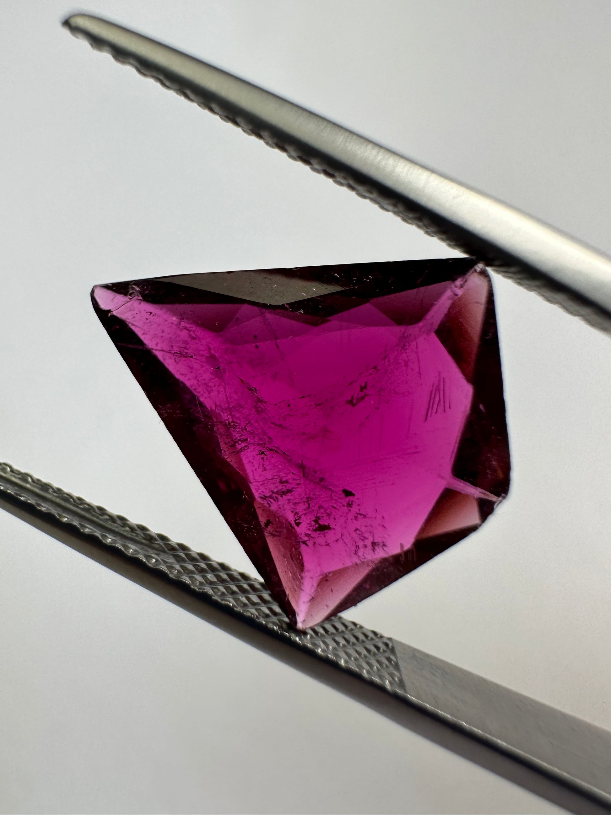 Dieser echte Turmalin (TR254) hat ein stattliches Gewicht von 4,29 Karat und eine attraktive, ausgefallene Form. Der violette Edelstein besticht durch seine transparente Klarheit und natürliche Einschlüsse. Der fachmännisch geschliffene Edelstein verleiht jeder Sammlung Eleganz.