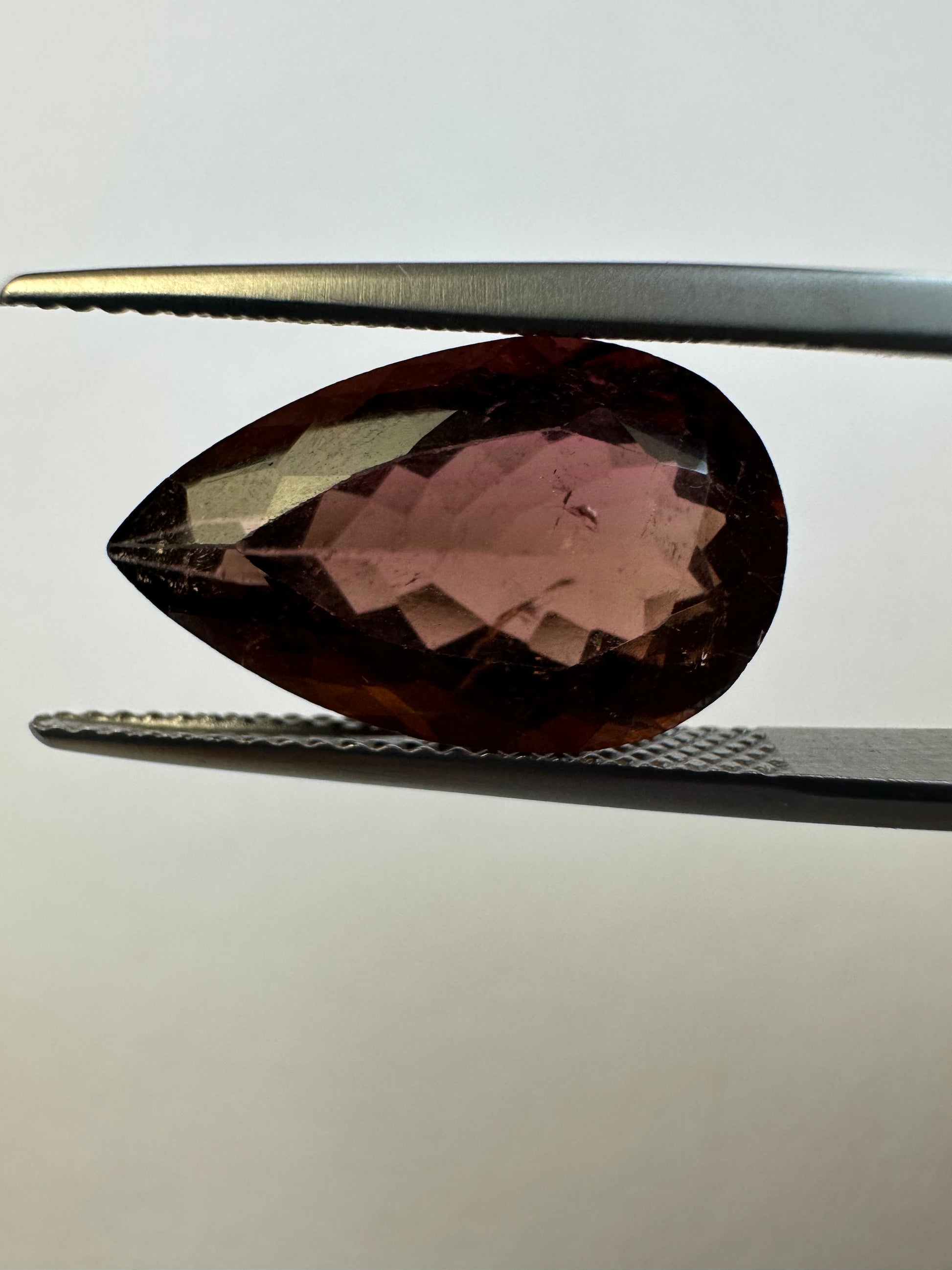 Dieser echte Turmalin (TR346) wiegt 7,37 Karat und hat eine dunkle Pfirsichfarbe und eine Tropfenform. Er bietet außergewöhnliche Transparenz und kann Einschlüsse enthalten, was ihn zu einer einzigartigen und wertvollen Ergänzung für jede Sammlung macht. Importiert aus Deutschland.
