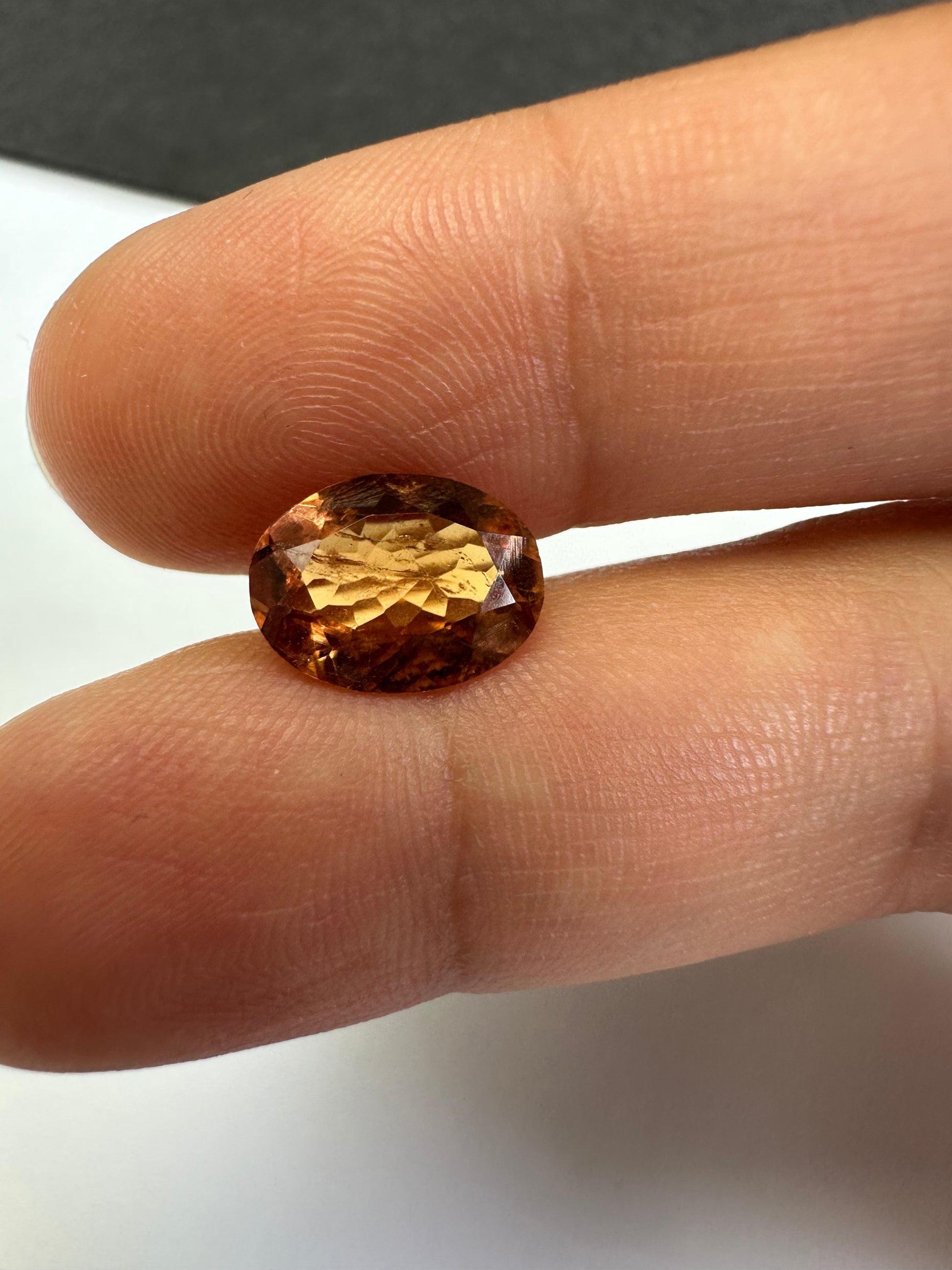Dieser echte Turmalin-Edelstein TR335 hat ein stattliches Gewicht von 2,03 Karat und eine attraktive ovale Form. Dieser pfirsichfarbene Edelstein besticht durch seine transparente Klarheit mit natürlichen Einschlüssen. Der fachmännisch geschliffene Edelstein verleiht jeder Sammlung Eleganz.