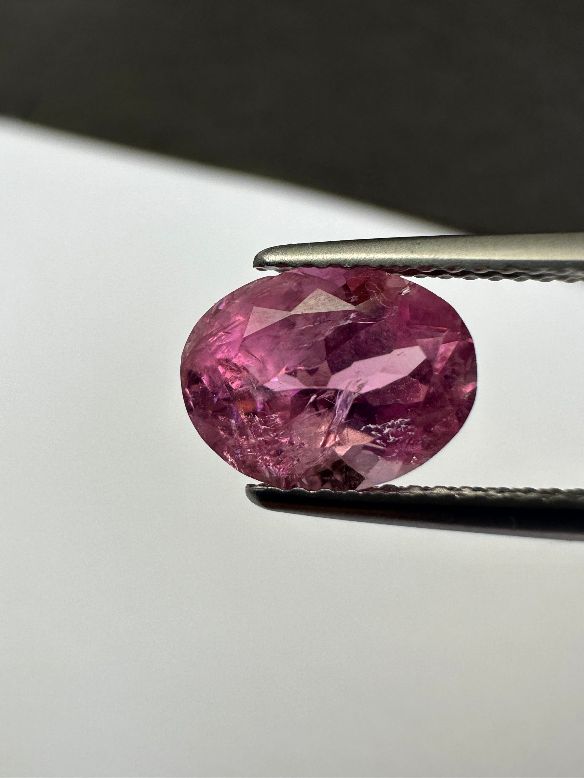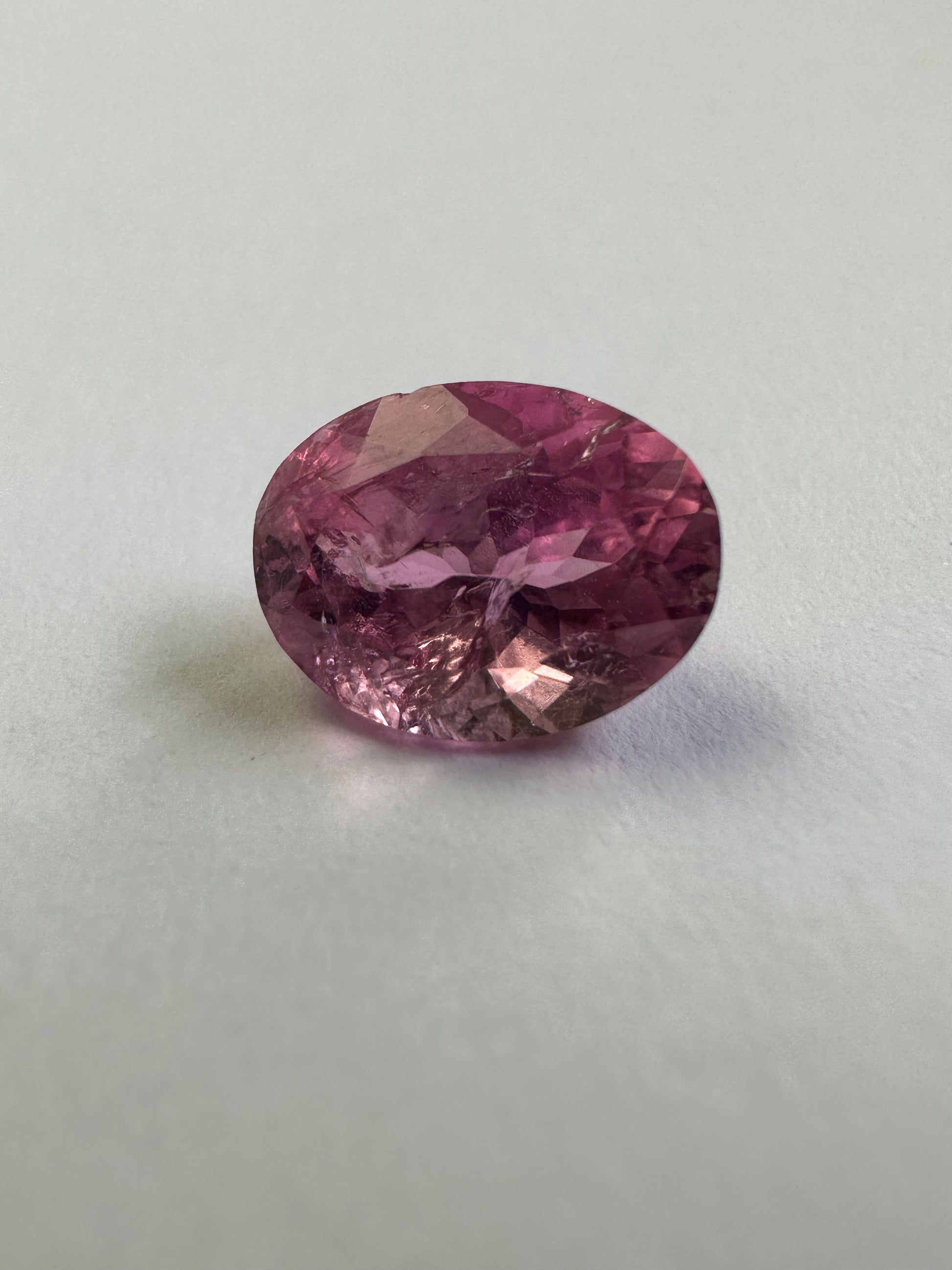 Dieser echte Turmalin-Edelstein TR337 hat ein stattliches Gewicht von 2,53 Karat und eine attraktive ovale Form. Dieser rosafarbene Edelstein besticht durch seine transparente Klarheit und natürliche Einschlüsse. Der fachmännisch geschliffene Edelstein verleiht jeder Sammlung Eleganz.