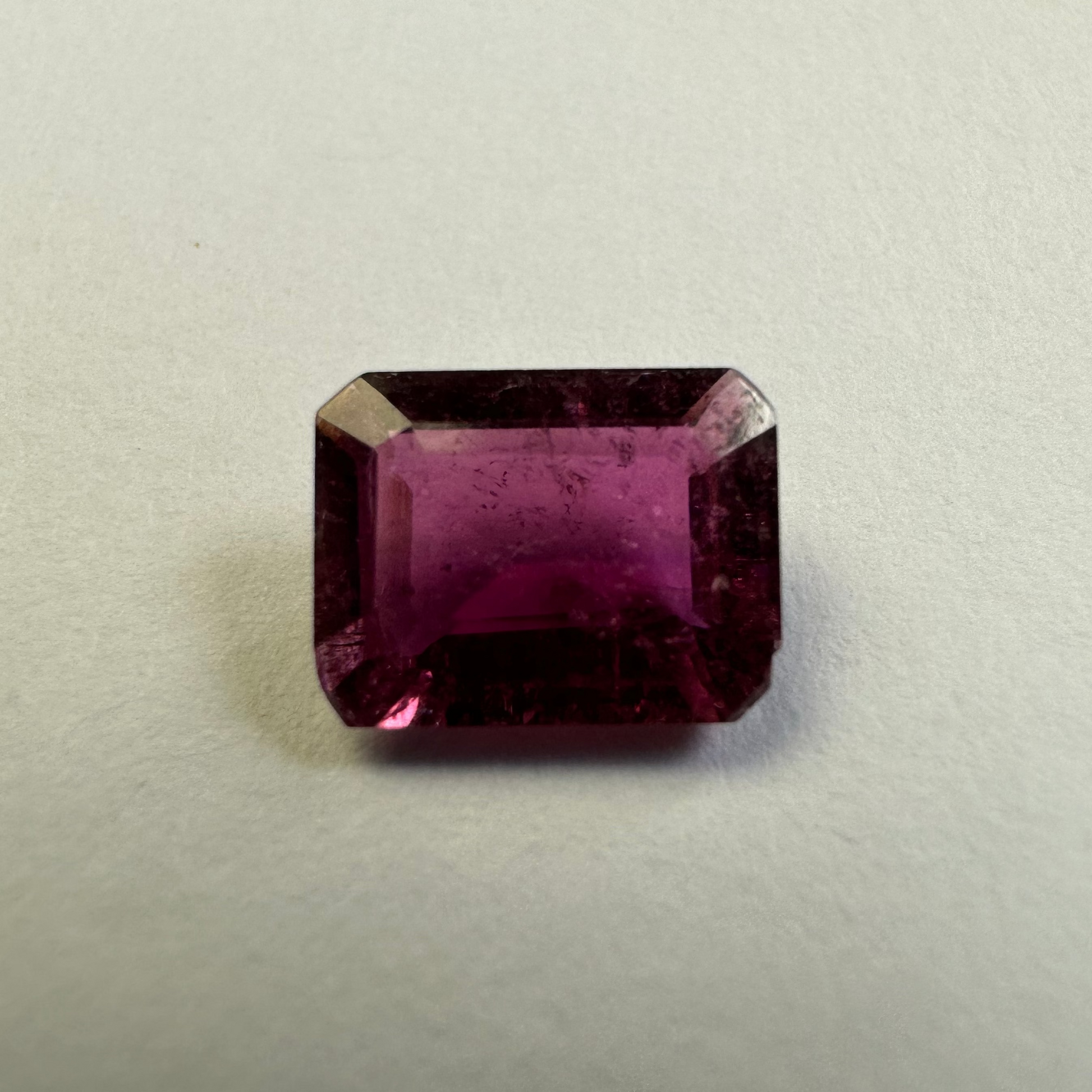 Dieser echte Turmalin-Edelstein TR341 hat ein stattliches Gewicht von 1,88 Karat und eine attraktive rechteckige Form. Dieser violette Edelstein besticht durch seine transparente Klarheit und natürliche Einschlüsse. Der fachmännisch geschliffene Edelstein verleiht jeder Sammlung Eleganz.