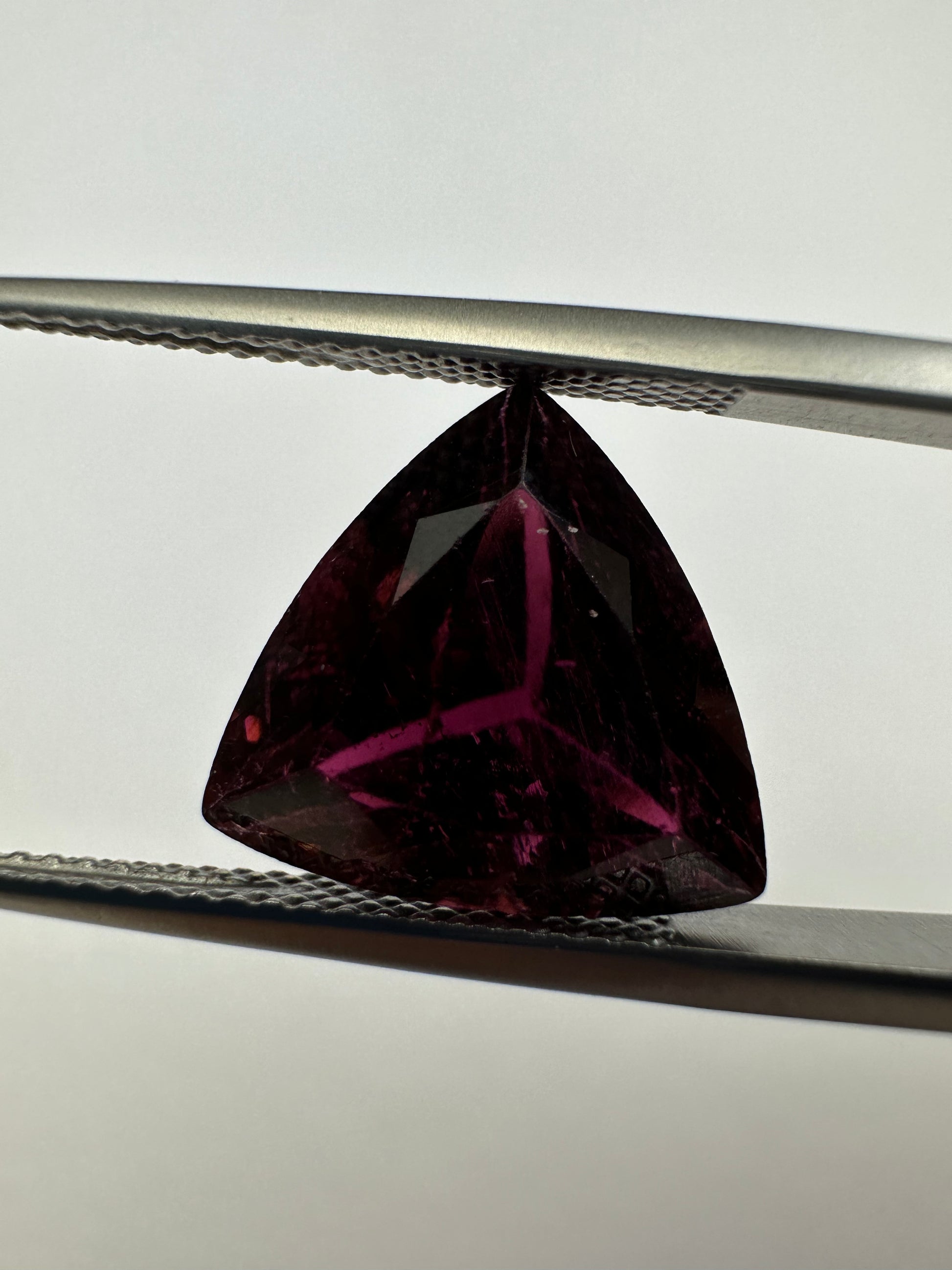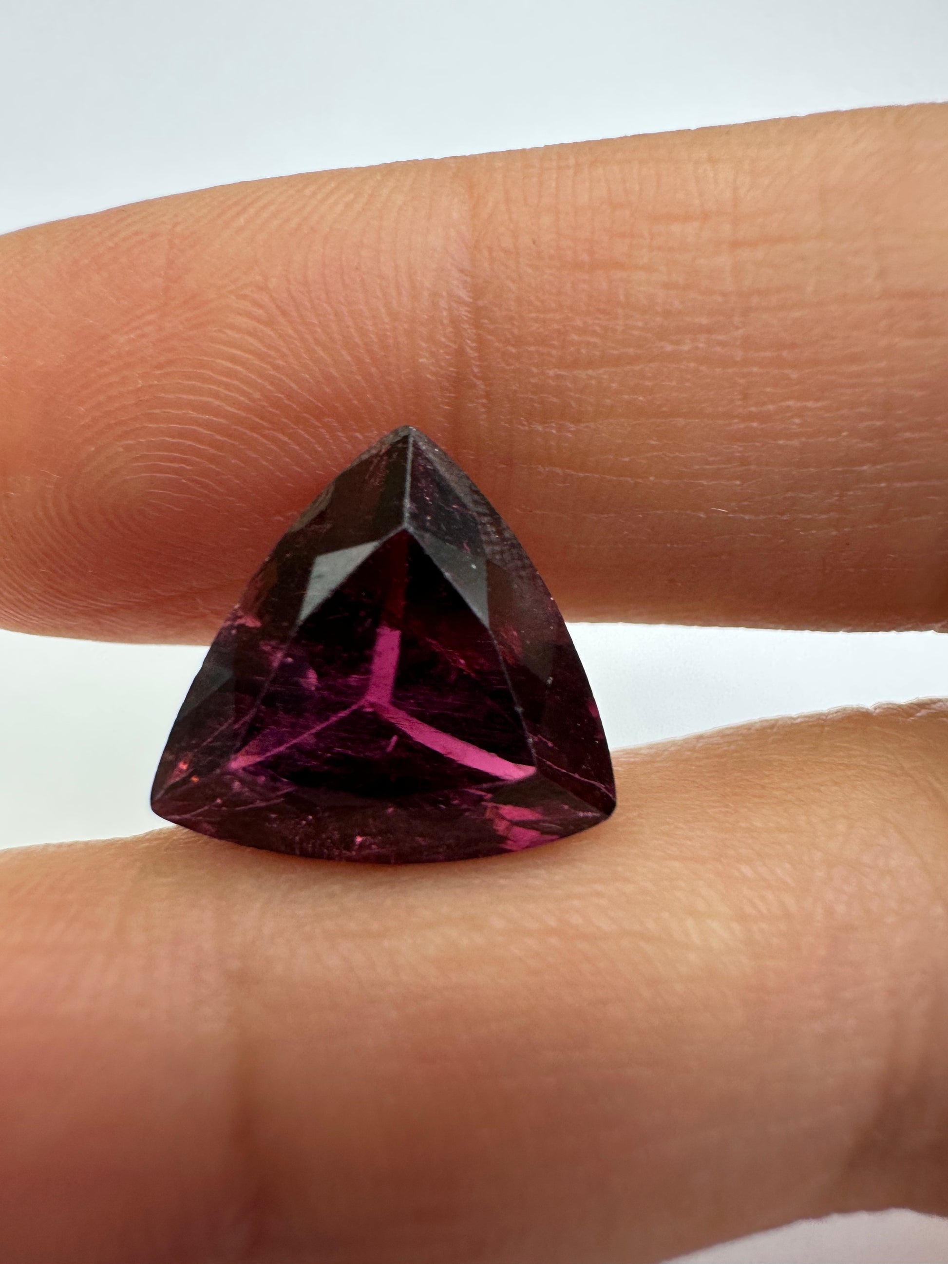 Dieser Turmalin-Edelstein TR370 wiegt 7,19 Karat und misst 12,8 x 12,5 x 8,6 mm. Seine violette Färbung und transparente Klarheit machen ihn zu einer atemberaubenden Ergänzung für jede Sammlung. Ohne sichtbare Einschlüsse bietet dieser dreieckige Edelstein ein wahres Abbild seiner natürlichen Schönheit. Versand aus Deutschland.