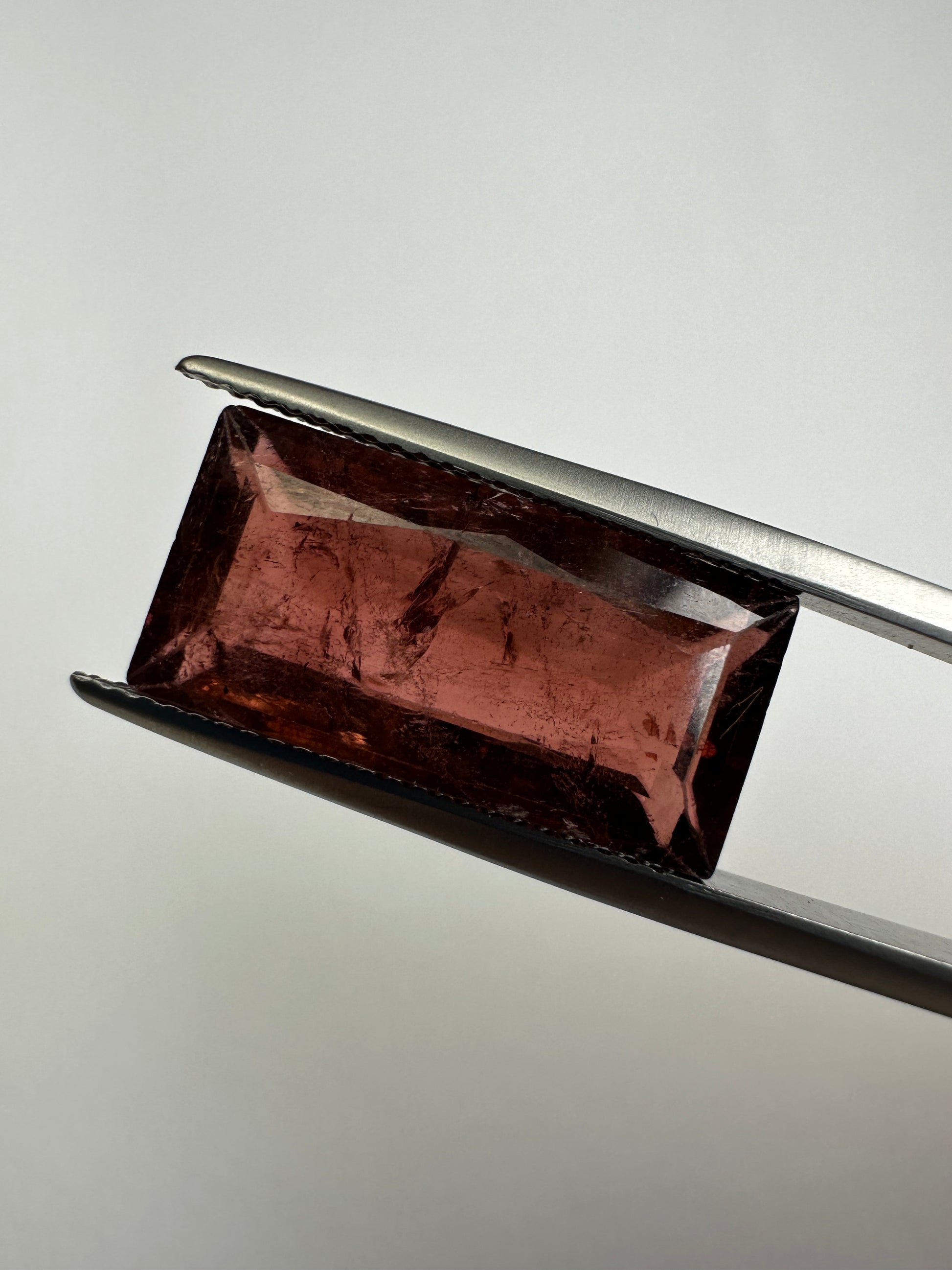 Dieser echte Turmalin (TR375) hat ein stattliches Gewicht von 11,33 Karat und eine attraktive rechteckige Form. Der violette Edelstein besticht durch seine transparente Klarheit und natürliche Einschlüsse. Der fachmännisch geschliffene Edelstein verleiht jeder Sammlung Eleganz.