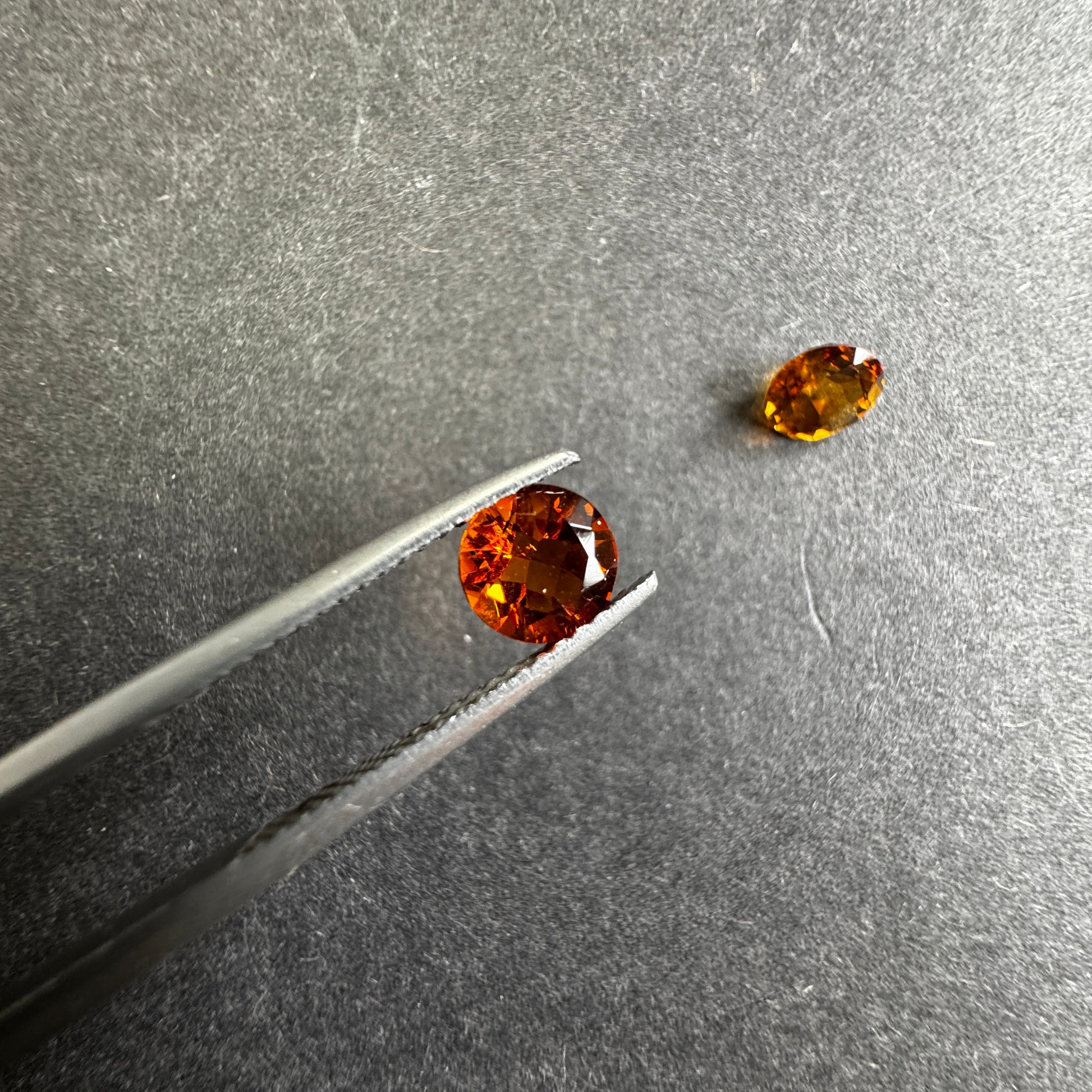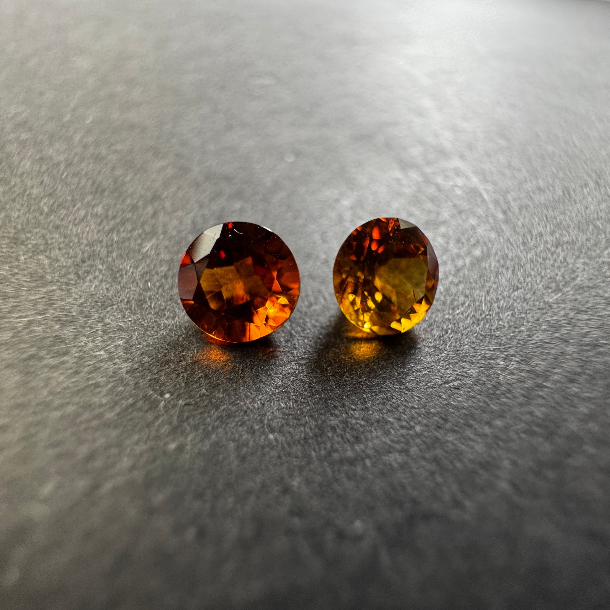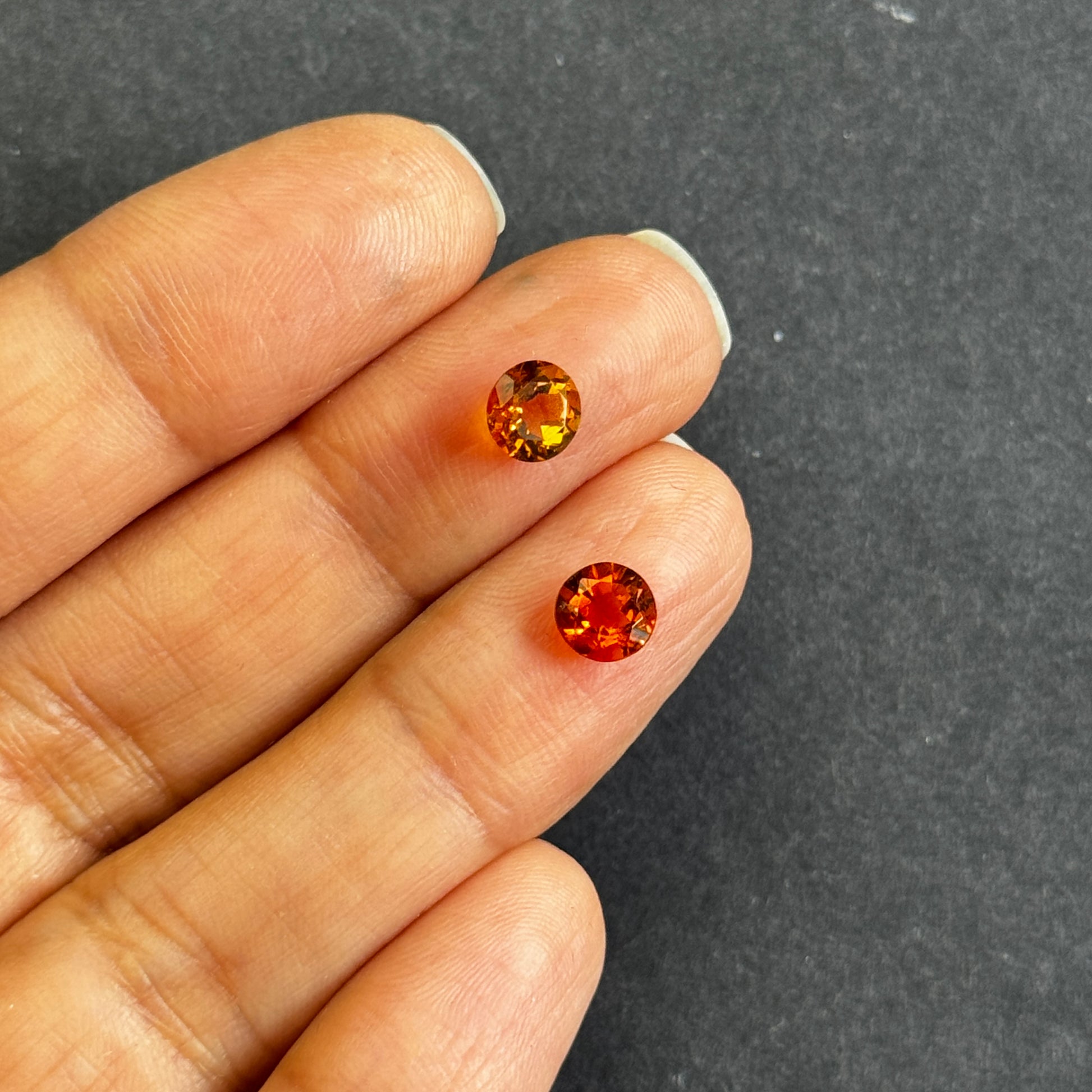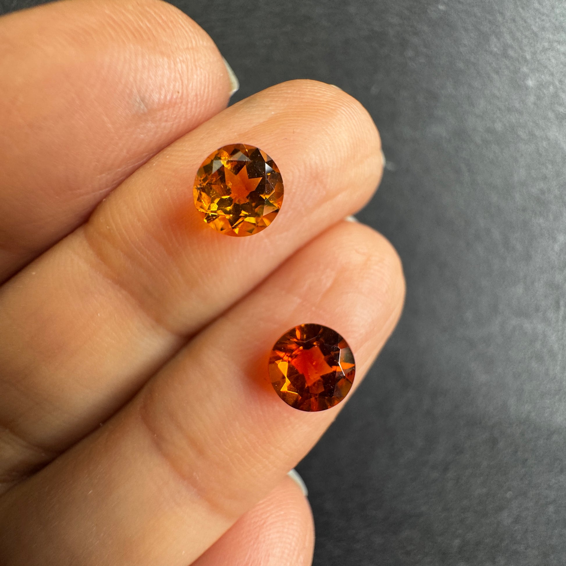 Dieses Set aus zwei exquisiten Citrin-Edelsteinen, fachmännisch gefertigt von EB664, besticht durch ein Gewicht von 2,121 ct und eine runde Form von 5,7 mm. Dank ihrer Transparenz und der wärmebehandelten Oberfläche verleihen diese Edelsteine jedem Schmuckstück einen Hauch von gelb-orangefarbener Eleganz. Aus Deutschland, mit Liebe.