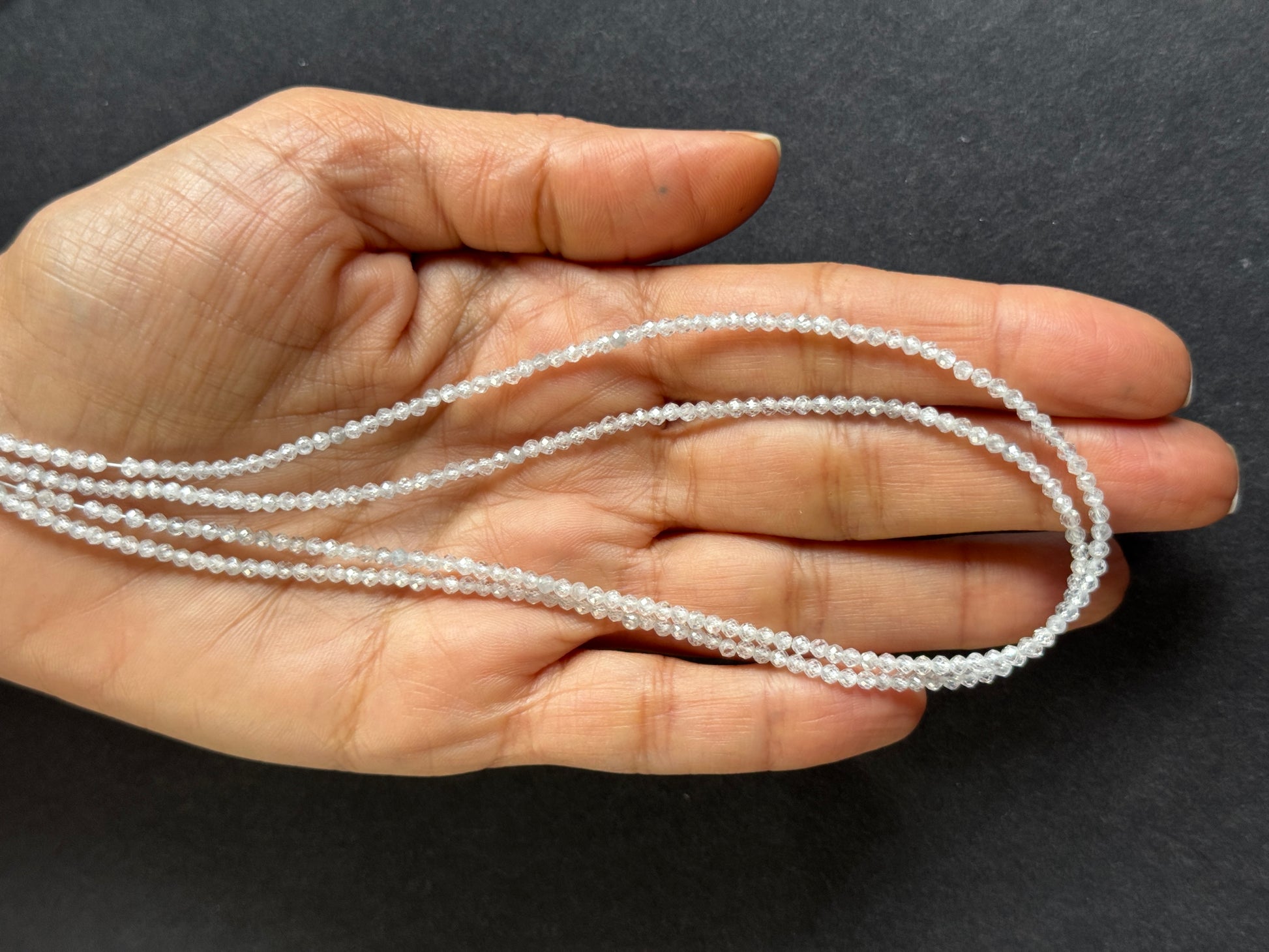 Enhance your jewelry collection with these stunning faceted round rock crystal beads. Stretching 42 cm long, they emit a clear, transparent brilliance that adds sophistication and versatility to your creations. Perfect for designing striking pieces that catch and reflect light, these beads introduce a natural, radiant beauty to any look.